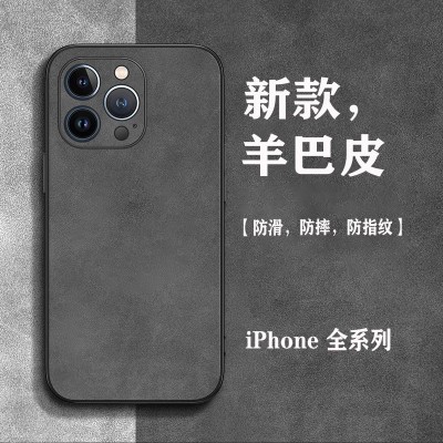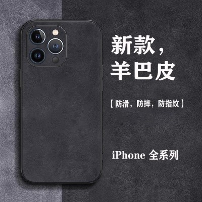 苹果15手机壳iphone13简约14pro羊巴皮11男款xr高级感xsmax保护套