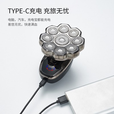 新款电动剃须刀9D磁吸刀头刮胡刀全身水洗光头机五合一套装跨境款