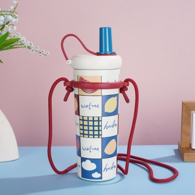 316不锈钢保温杯高颜值男女带提绳吸管杯大容量便携浮球儿童水杯