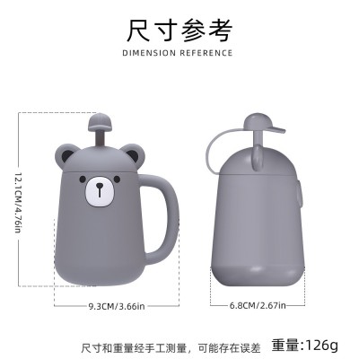 新款儿童学饮杯小动物食品级硅胶带把手防烫防摔防漏儿童吸管杯
