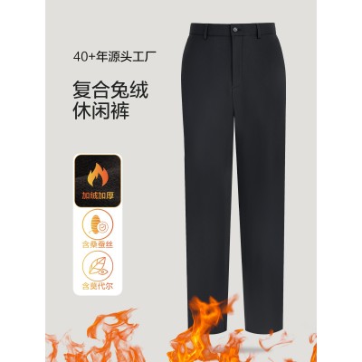 冬季加绒加厚休闲裤男裤子男士商务休闲西裤含桑蚕丝莫代尔直筒裤