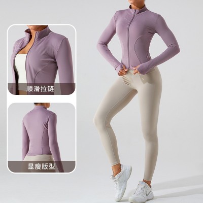 秋冬新款欧美拉链长袖瑜伽外套速干显瘦瑜伽服女跑步健身运动上衣