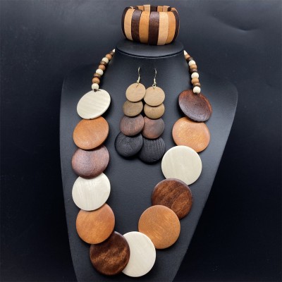 波西米亚复古木质项链耳环手镯套装necklace景区外贸平台热卖新品