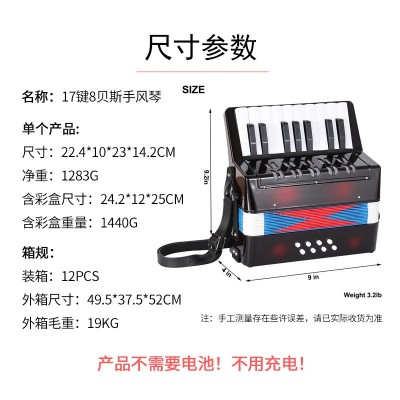 17键儿童手风琴初学益智演奏玩具乐器跨境热销圣诞礼物