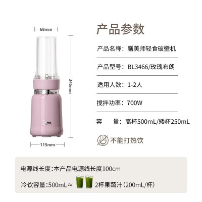 膳美师BL3466轻食破壁机小型搅拌料理机全自动果蔬榨汁机