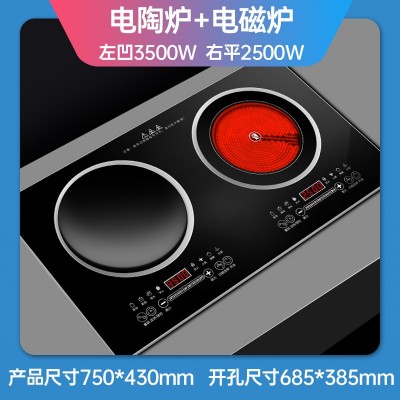 3500W双灶电磁炉家庭用新款嵌入式凹面电陶炉