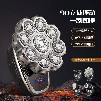 新款电动剃须刀9D磁吸刀头刮胡刀全身水洗光头机五合一套装跨境款