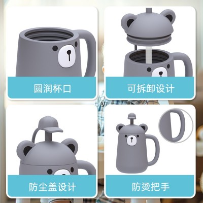 新款儿童学饮杯小动物食品级硅胶带把手防烫防摔防漏儿童吸管杯