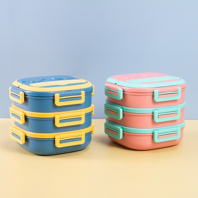 新品分层不锈钢保温饭盒密封学生儿童分格餐盒带餐具便携便当盒 儿童饭盒