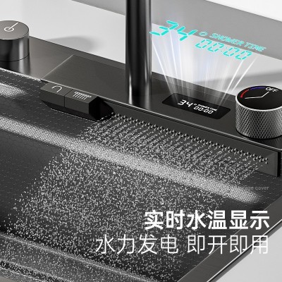 飘雨大单槽304不锈钢水槽洗碗池厨房纳米多功能洗菜盆洗手盆