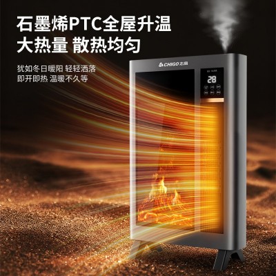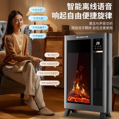 石墨烯取暖器仿真炭火+智能语音+加湿家用暖风机壁炉热风机