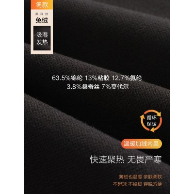 冬季加绒加厚休闲裤男裤子男士商务休闲西裤含桑蚕丝莫代尔直筒裤