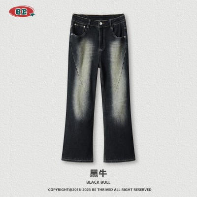 2025春季美式宽松潮牌水洗破坏vibe风微喇牛仔裤长裤男潮