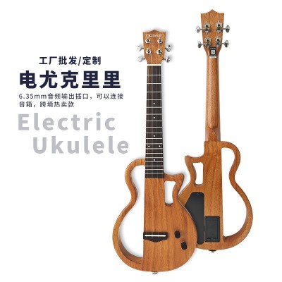 23英寸静音尤克里里实木电Ukulele琴批发6.35mm连接音箱尤克里里
